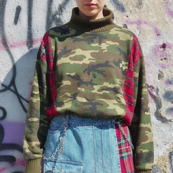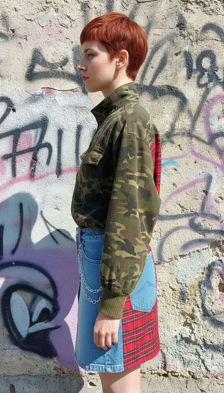 Design unico: combinazione di denim e tartan, per un look distintivo e moderno. Tasche Tascioni: pratiche tasche ampie per un tocco funzionale e stiloso. Catena Decorativa: Elemento di design che aggiunge un tocco di ribellione al tuo outfit. Versatile: perfetta per abbinamenti casual o per un look più audace con stivali e accessori punk. Scegli la nostra gonna per un look che non passa inosservato e abbraccia la moda sostenibile con stile.