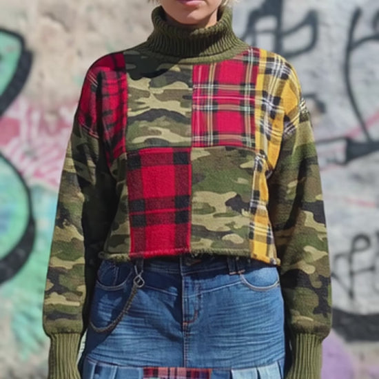 Gonna Denim a Pieghe con inserti Tartan